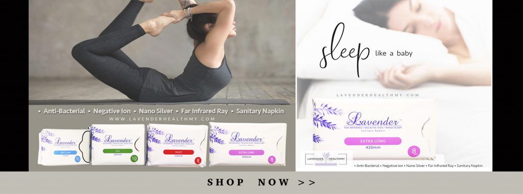 LAVENDER Sanitary napkin with Negative Ion, Nano Silver & Far Infrared Ray that prevents up 99% of bad bacteria growth for everyday freshness, reduce unpleasant odour, prevent skin irritation and more feminine hygiene care.