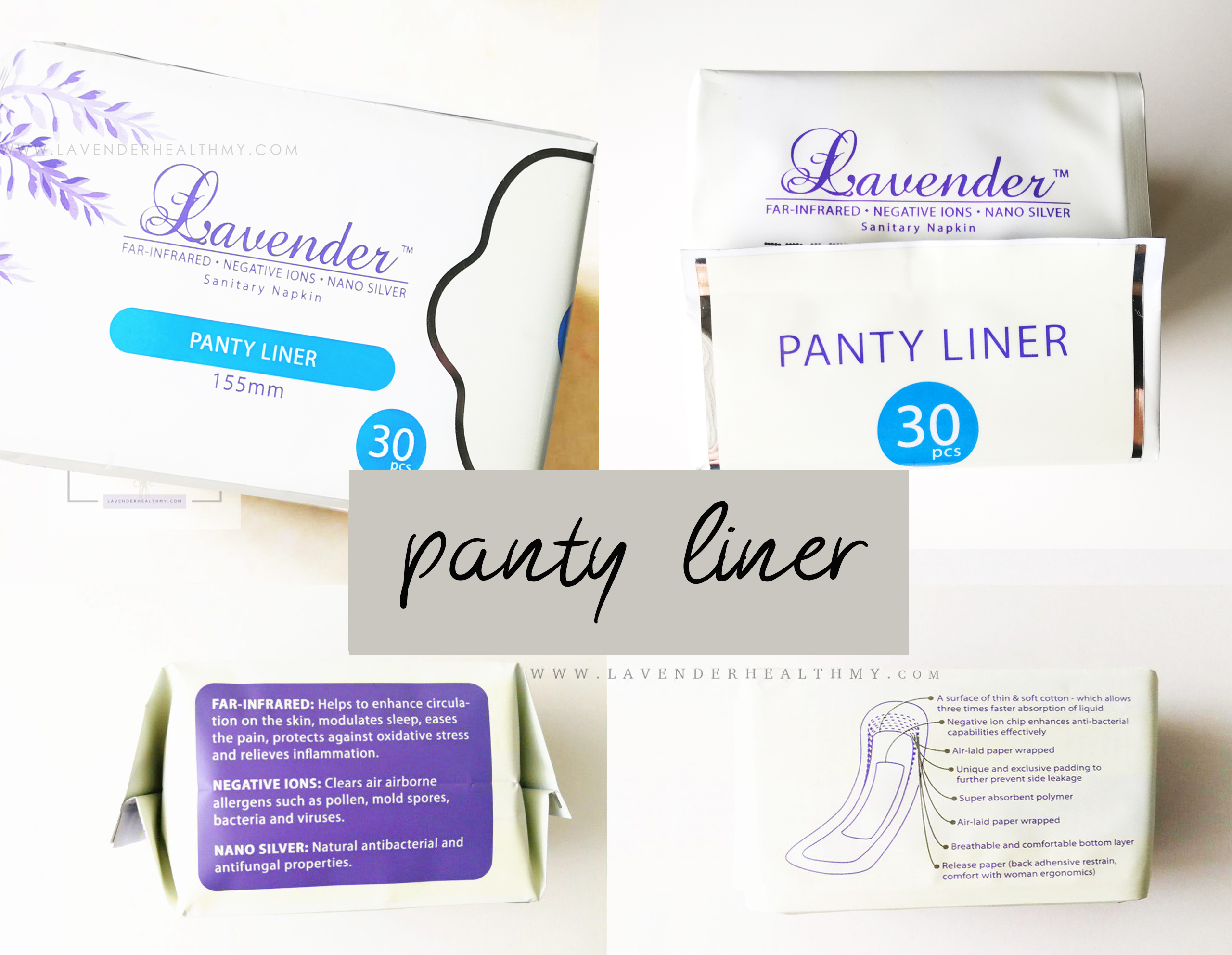 PANTY LINER Sanitary napkin with Negative Ion, Nano Silver & Far Infrared Ray that prevents bad bacteria growth for everyday freshness, reduce unpleasant odour, prevent skin irritation and more feminine hygiene care.